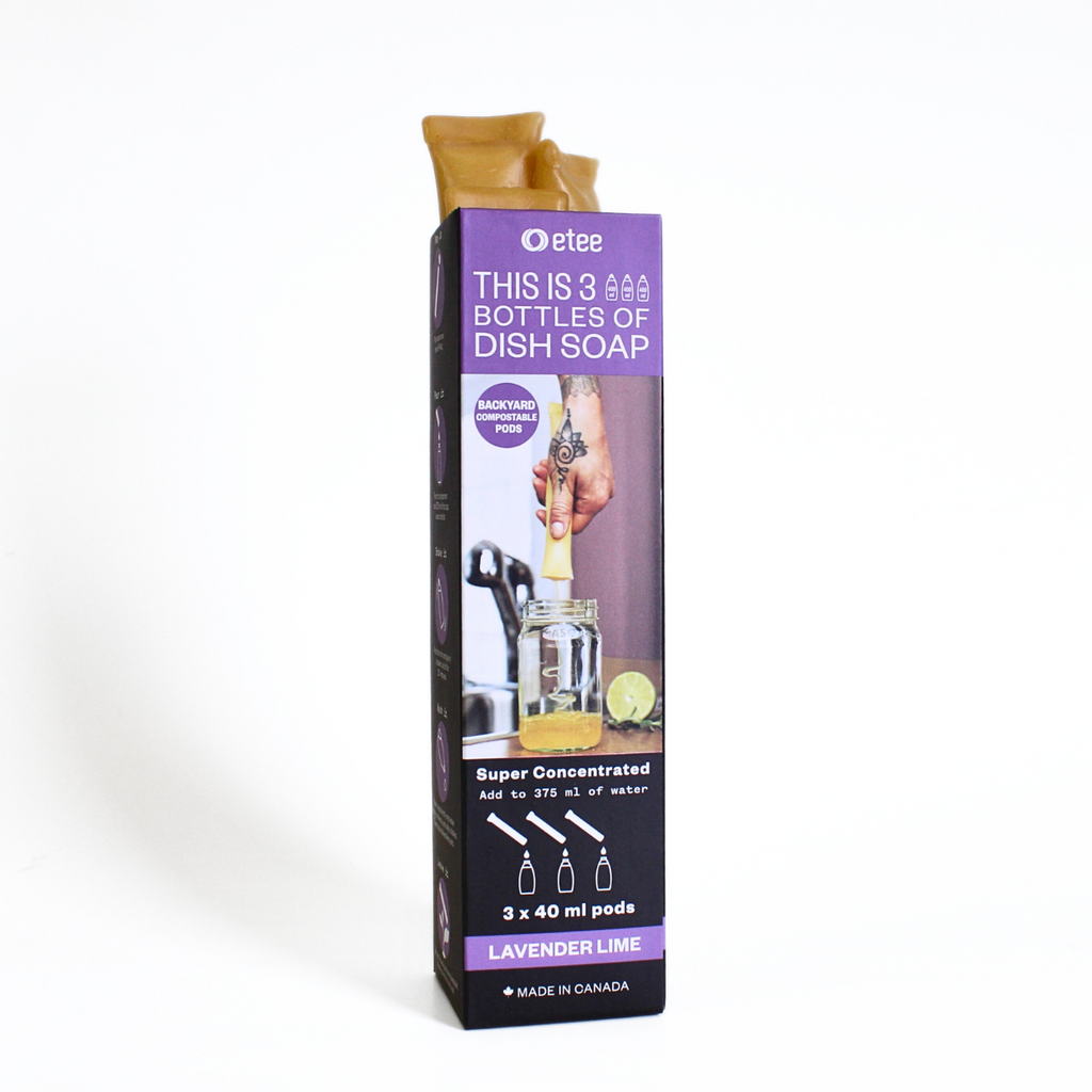 Plastic-free dish soap? Say it ain't so!  etee's team of innovators have created a natural pod that holds our concentrated dish soap so that you can wave goodbye to the plastic dish soap bottles in the grocery aisle - see ya later!